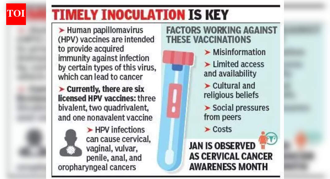 गर्भाशयाच्या मुखाचा कर्करोग मोठ्या प्रमाणात टाळता येण्याजोगा आहे, तरीही तो भारतातील महिलांमध्ये कर्करोगाशी संबंधित मृत्यूच्या प्रमुख कारणांपैकी एक आहे. वैद्यकीय तज्ञांनी स्पष्ट केले की लसीकरण हे गर्भाशयाच्या ग्रीवेच्या कर्करोगाशी संबंधित प्राथमिक विषाणू ह्युमन पॅपिलोमा व्हायरस (HPV) च्या कर्करोगास कारणीभूत होणा-या स्ट्रेनपासून होणारे संक्रमण टाळण्यासाठी सर्वात प्रभावी साधनांपैकी एक आहे. जानेवारी हा गर्भाशय ग्रीवेचा कर्करोग जागरूकता महिना म्हणून पाळण्यात आल्याने, आरोग्य तज्ञ कुटुंबांना वेळेवर लसीकरणास प्राधान्य देण्यास उद्युक्त करत आहेत आणि महिलांना 20 वर्षांच्या वयानंतर पॅप स्मीअर चाचण्यांसह नियमित तपासणी करण्यास प्रोत्साहित करत आहेत, ज्यामुळे लवकर ओळख आणि उपचार शक्य होतात. परंतु भारतात गर्भाशयाच्या मुखाच्या कर्करोगाच्या उच्च घटनांमध्ये जागरूकतेच्या अभावाने मोठी भूमिका बजावली. HPV लस वर्षानुवर्षे उपलब्ध असली तरी, गर्भाशयाच्या मुखाचा कर्करोग हा सार्वजनिक आरोग्याचा गंभीर प्रश्न असूनही सार्वजनिक समज मर्यादित आहे, असे डॉ. संतोष सिदीद, वरिष्ठ सल्लागार आणि नोबल हॉस्पिटल पुणे येथील प्रसूती व स्त्रीरोग विभागाचे प्रमुख सांगतात. ते म्हणाले, “बहुतेक लोक फक्त बीसीजी, रेबीज आणि पोलिओ सारख्या लसींशी परिचित आहेत. प्रतिबंधात्मक आरोग्यसेवेचा अवलंब कमी आहे, कारण अनेक लक्षणे दिसू लागल्यानंतरच वैद्यकीय सेवा घेतात. ‘सर्विकल लस’ हा शब्द तरुण पुरुषांनाही परावृत्त करतो; तिला HPV लस म्हटले तर ती अधिक समावेशक होईल. जसे आणि जेव्हा सरकार लसीकरण कार्यक्रमाला गती देईल तेव्हा परिस्थिती सुधारेल, परंतु आम्हाला अधिक जागरूकता करणे आवश्यक आहे, विशेषत: पालकांमध्ये, विविध पोहोच उपक्रमांद्वारे.” अपोलो क्लिनिकमधील प्रसूती आणि स्त्रीरोगतज्ञ डॉ. बिजल मिस्त्री यांनी यावर भर दिला की गर्भाशयाच्या मुखाचा कर्करोग हा भारतातील महिलांमध्ये दुसरा सर्वात जास्त निदान झालेला कर्करोग आहे. तिने TOI ला सांगितले, “HPV लस HPV आणि HPV-संबंधित कॅन्सरच्या प्रभावांना प्रतिबंध करते आणि भारतात जवळपास 17 वर्षांपासून उपलब्ध होती. आता, लसीकरण कमी मुलींसह, भारतातील लाखो मुलींच्या आरोग्यासाठी आणि आरोग्यासाठी तातडीचा धोका आहे. चुकीची माहिती, मर्यादित प्रवेश आणि उपलब्धता, सांस्कृतिक आणि धार्मिक समजुती, समवयस्कांकडून येणारा सामाजिक दबाव आणि खर्च यामुळे लस संकोच निर्माण होतो.” तज्ञांच्या मते, अशा प्रकारचे कर्करोग दूर करण्यासाठी एकत्रित दृष्टीकोन आवश्यक आहे: जागरूकता सुधारणे, प्रतिबंधात्मक तपासणी सामान्य करणे आणि अचूक माहितीद्वारे लस आत्मविश्वास वाढवणे. त्यांनी जोडले की समुदाय-स्तरीय शिक